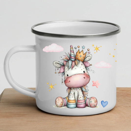 Personalisierte Einhorn Tasse für Kinder – Emaille Kindertasse mit Name