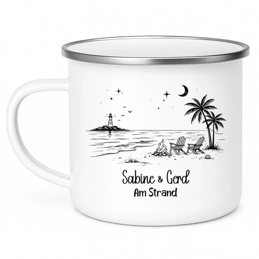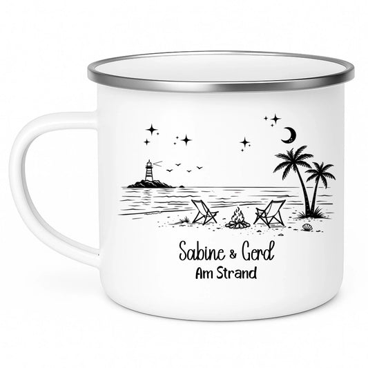 Personalisierte Emaille Camping Tasse am Strand