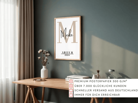Unsere personalisierten Poster sind eine großartige Möglichkeit, diesen wichtigen Meilenstein festzuhalten. Erstellen Sie ein Poster mit dem Namen des Absolventen, dem Grad und dem Abschlussdatum, um eine bleibende Erinnerung an diesen bedeutsamen Tag zu schaffen.