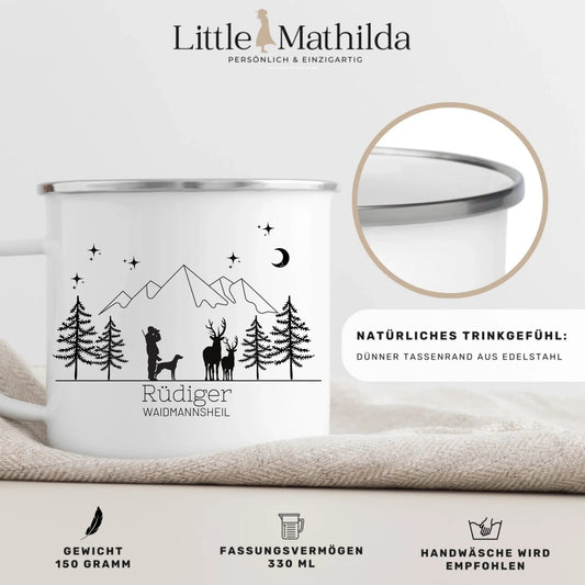 Personalisierte Emaille Tasse Angler "Petri Heil"