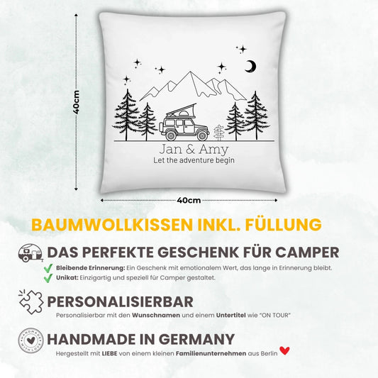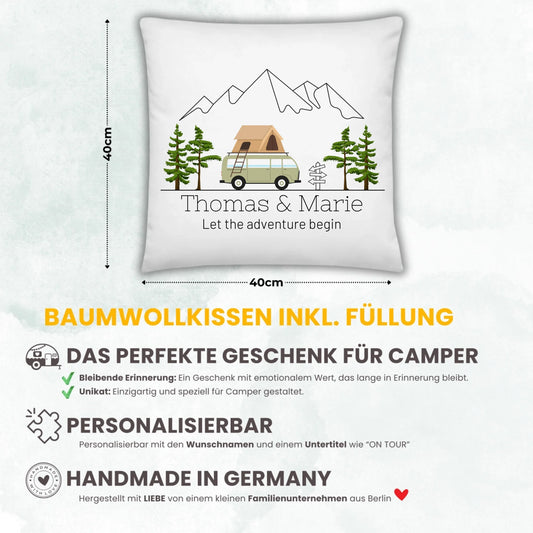 Personalisiertes Camping Kissen bunter Camper mit Dachzelt