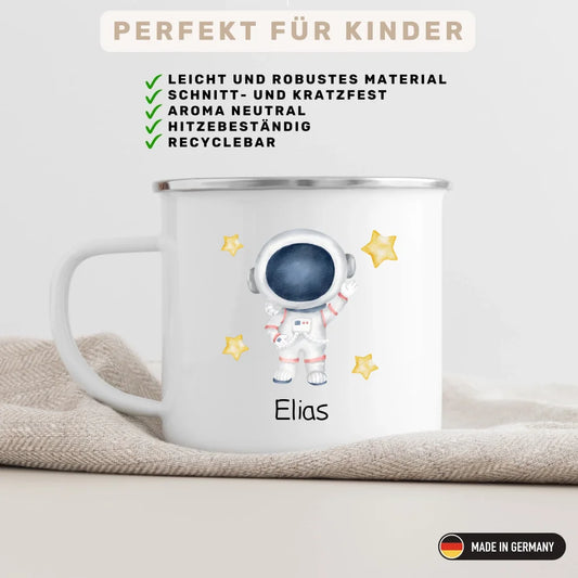 Personalisierte Emaille Kinder Tasse "Hallo" Astronaut