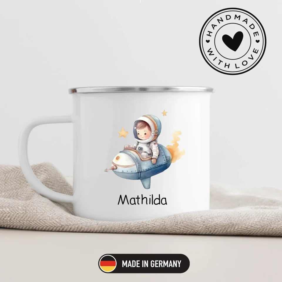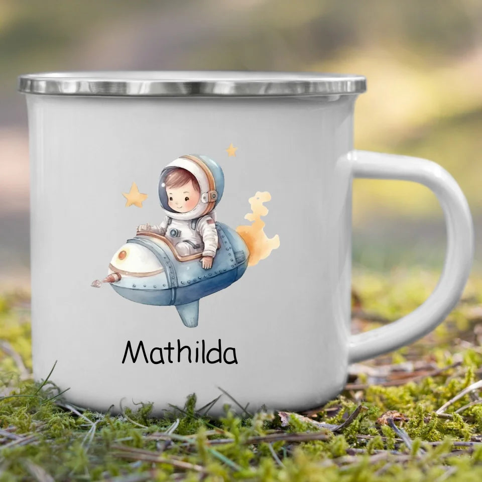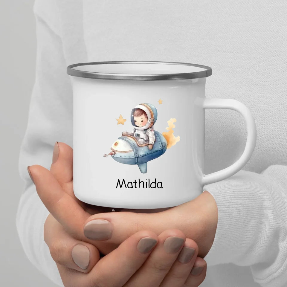 Personalize your adventures! The astronaut enamel mug from Little Mathilda for little space explorers