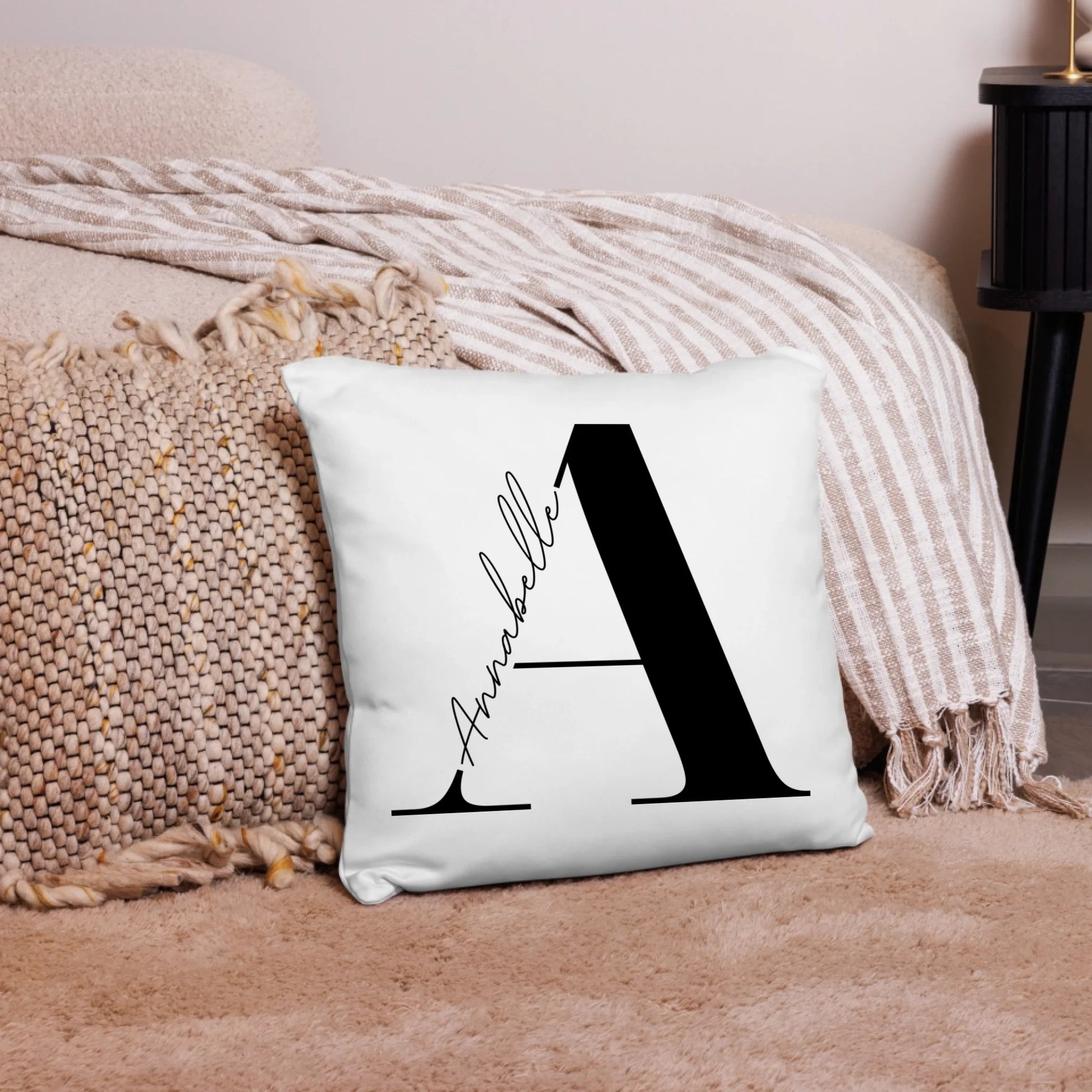 Minimalist design : Our pillows feature a simple, timeless design in black and white. The first letter of the name is presented in a clear, minimalist font, followed by the full name. This simple elegance fits perfectly with any decor.