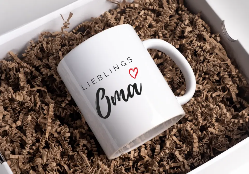 Unsere personalisierte Tasse ist nicht nur ein Geschenk, sondern ein Ausdruck Ihrer Liebe und Anerkennung. Ob zum Geburtstag, zu Weihnachten oder einfach als Zeichen Ihrer Wertschätzung - diese Tasse wird Ihre Oma jedes Mal lächeln lassen, wenn sie sie benutzt.