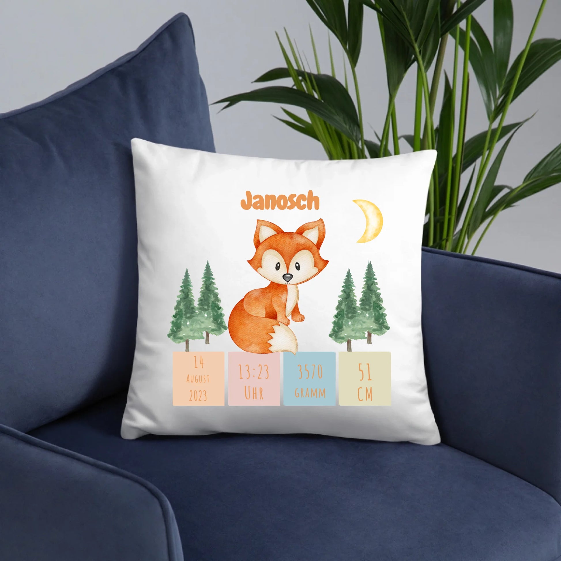 Personalisiertes Geburtskissen: Fuchs (40x40cm Baumwolle)