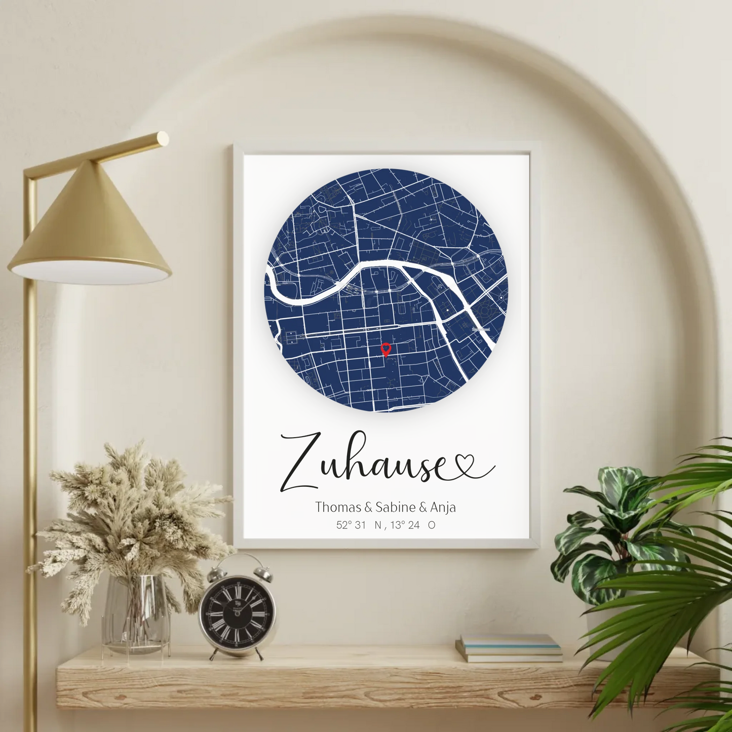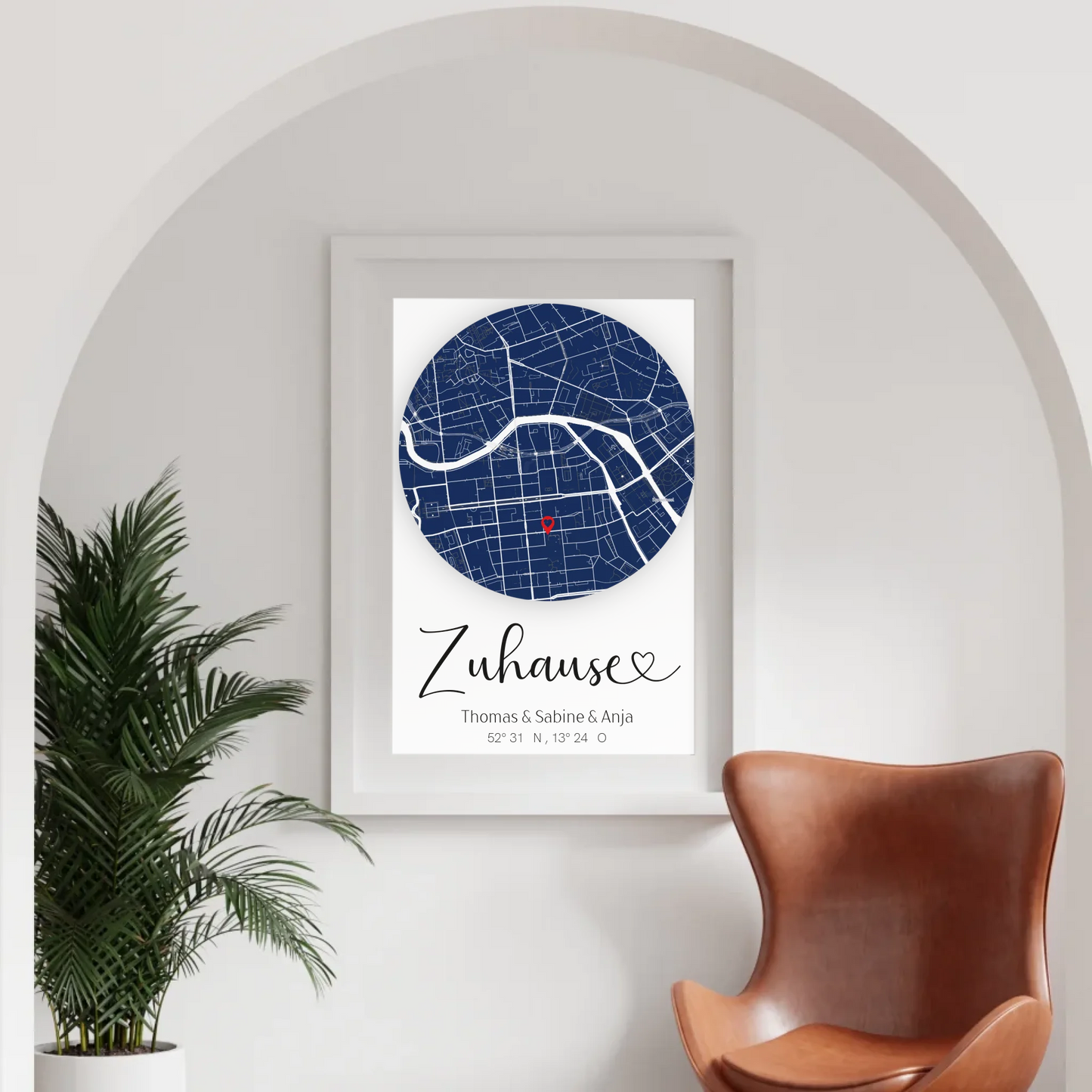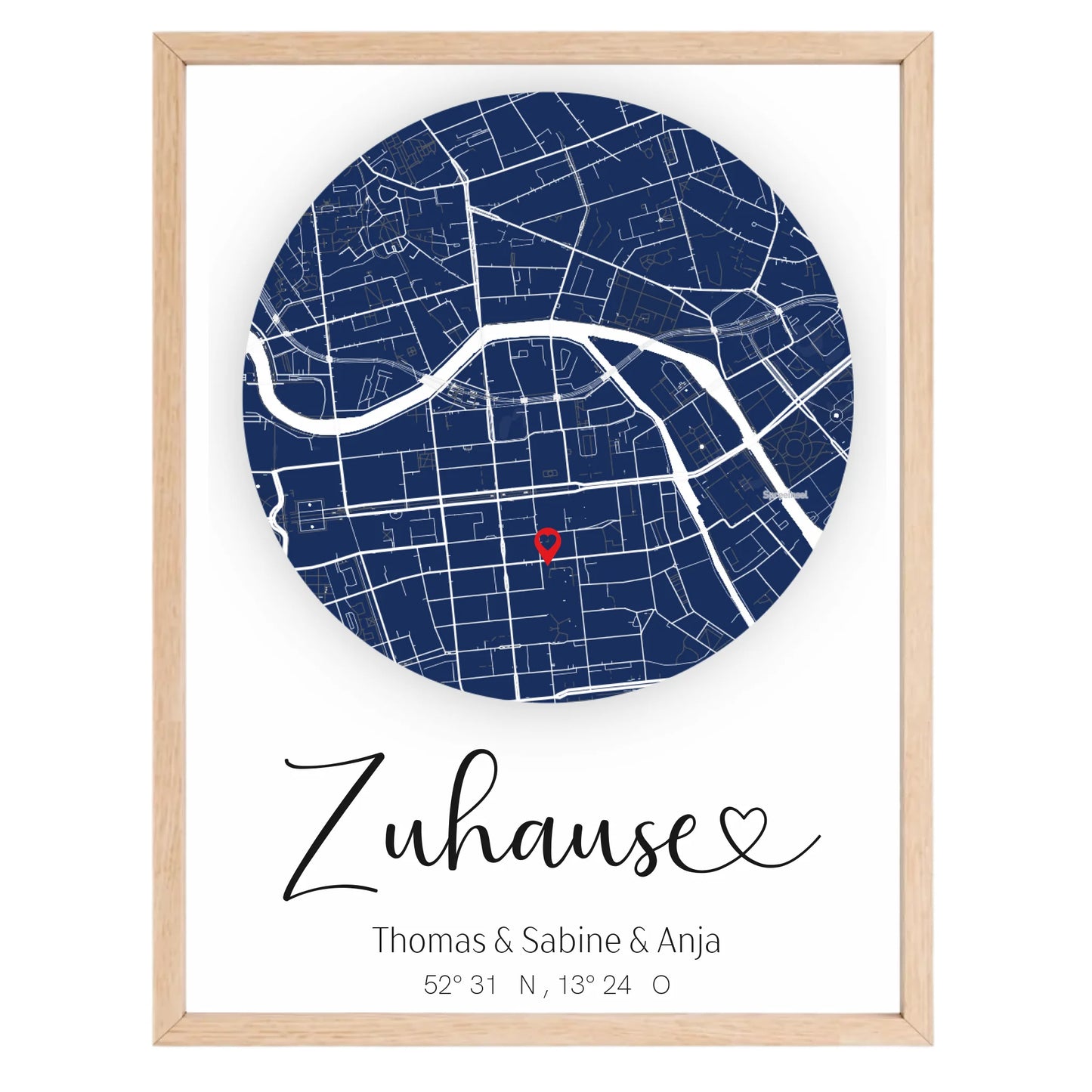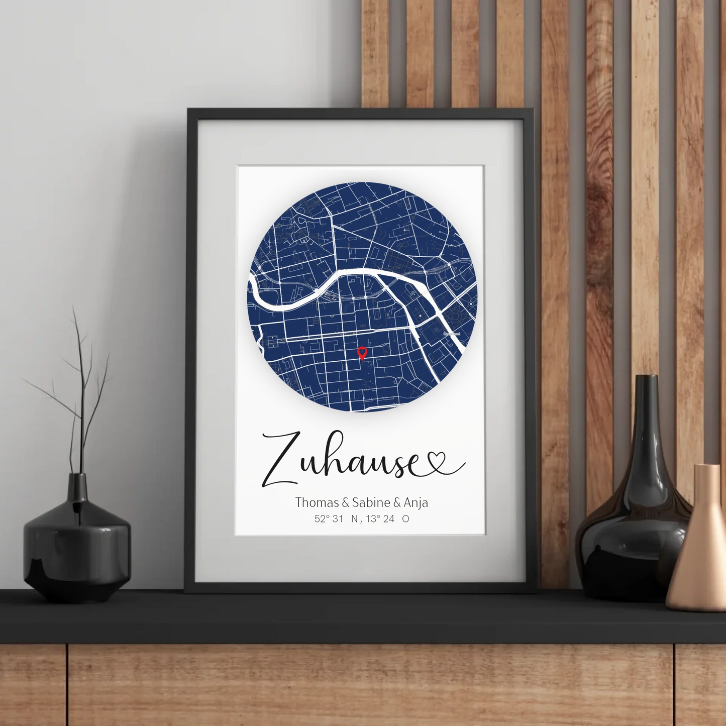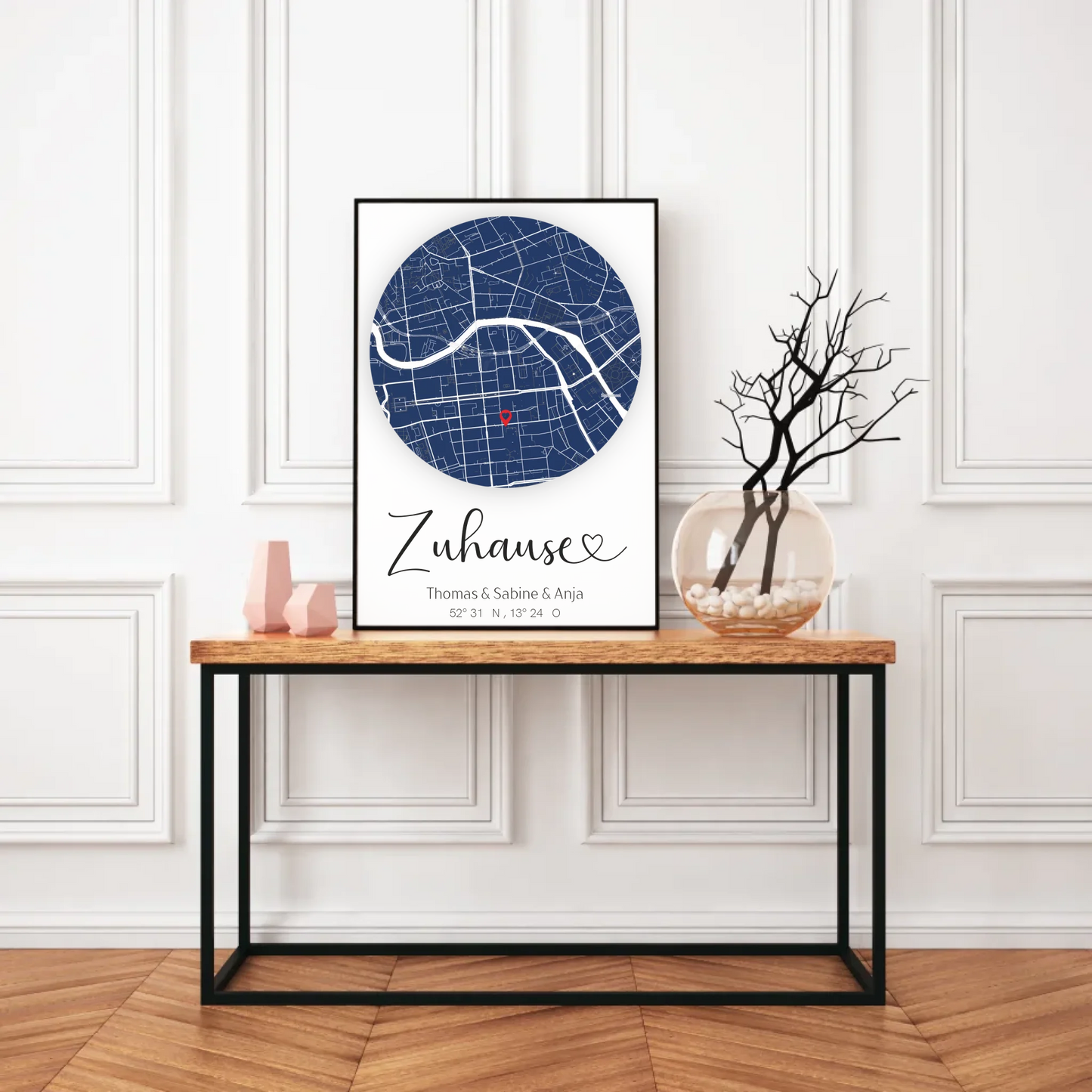 Ein Zuhause ist mehr als nur vier Wände – es sind die Erinnerungen, die es besonders machen. Unser personalisiertes Stadtposter in Kreisform verewigt deine Lieblingsstadt auf stilvolle Weise. Ob als Geschenk zum Einzug, zur Hochzeit oder als individuelle Wanddekoration – dieses einzigartige Stadtplan-Poster macht jeden Raum besonders.