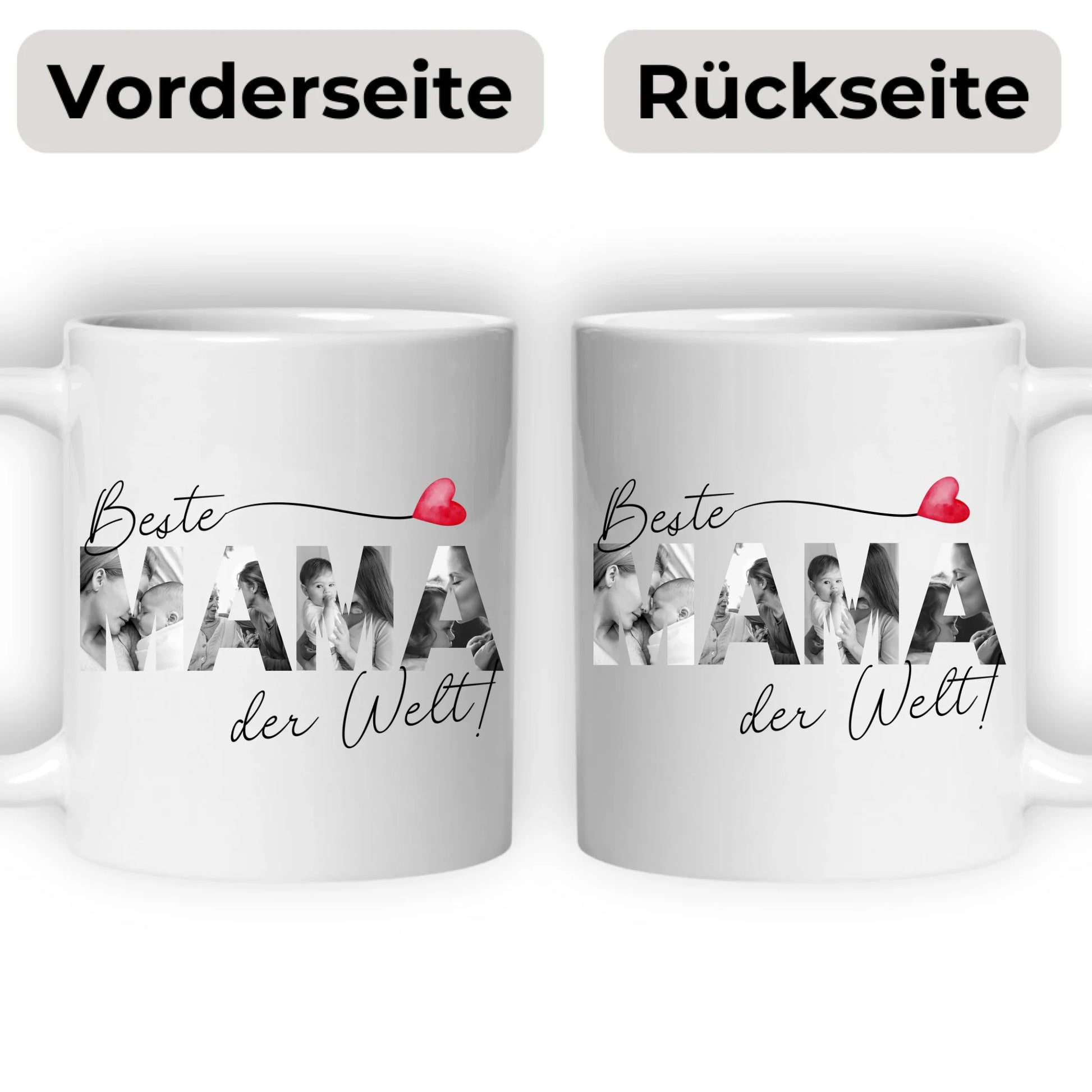 Personalisiertes Geschenk für Mama – Foto-Tasse „Beste Mama“ mit 4 Wunschfotos