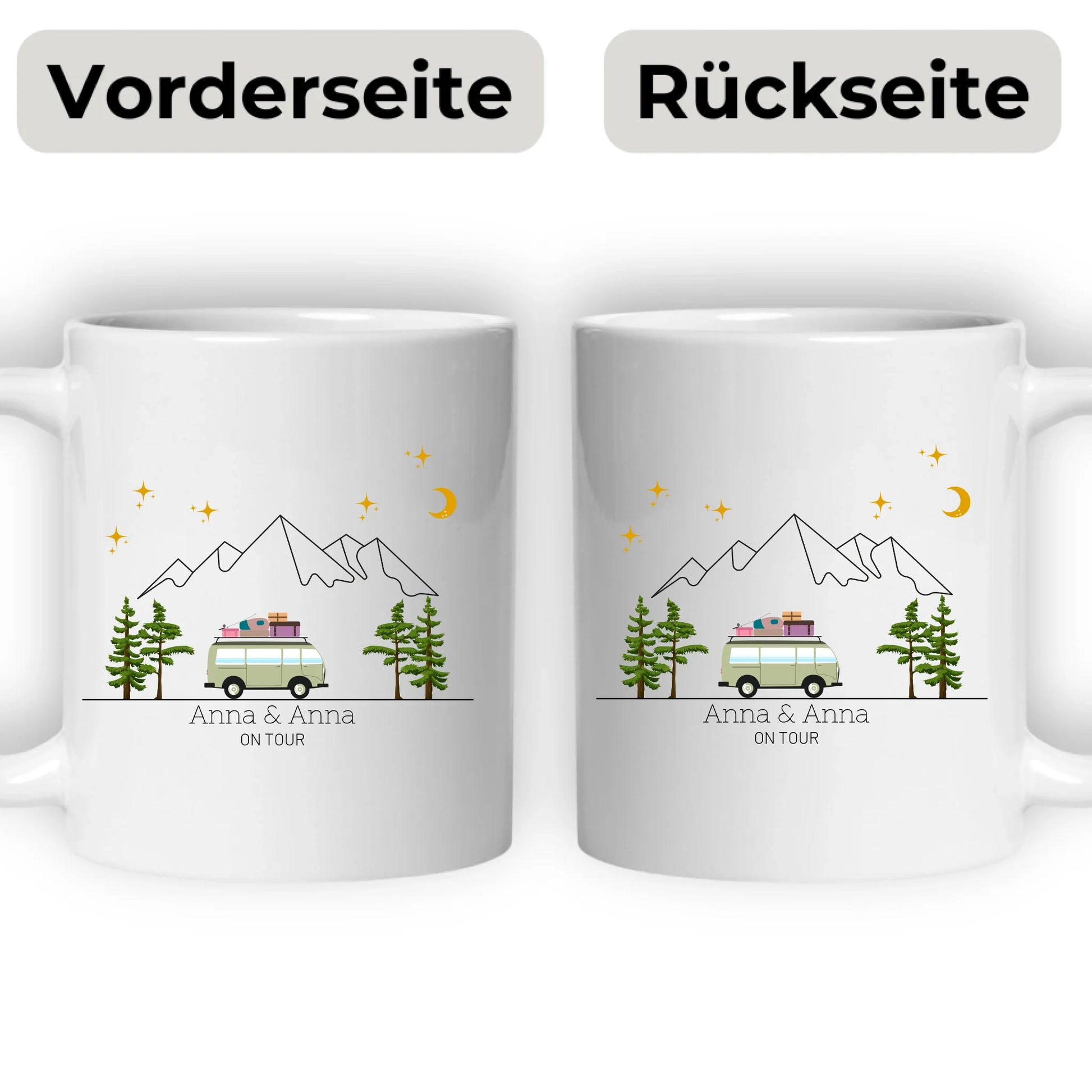 Personalisierte Emaille Camping Tasse "Bunter Camper"