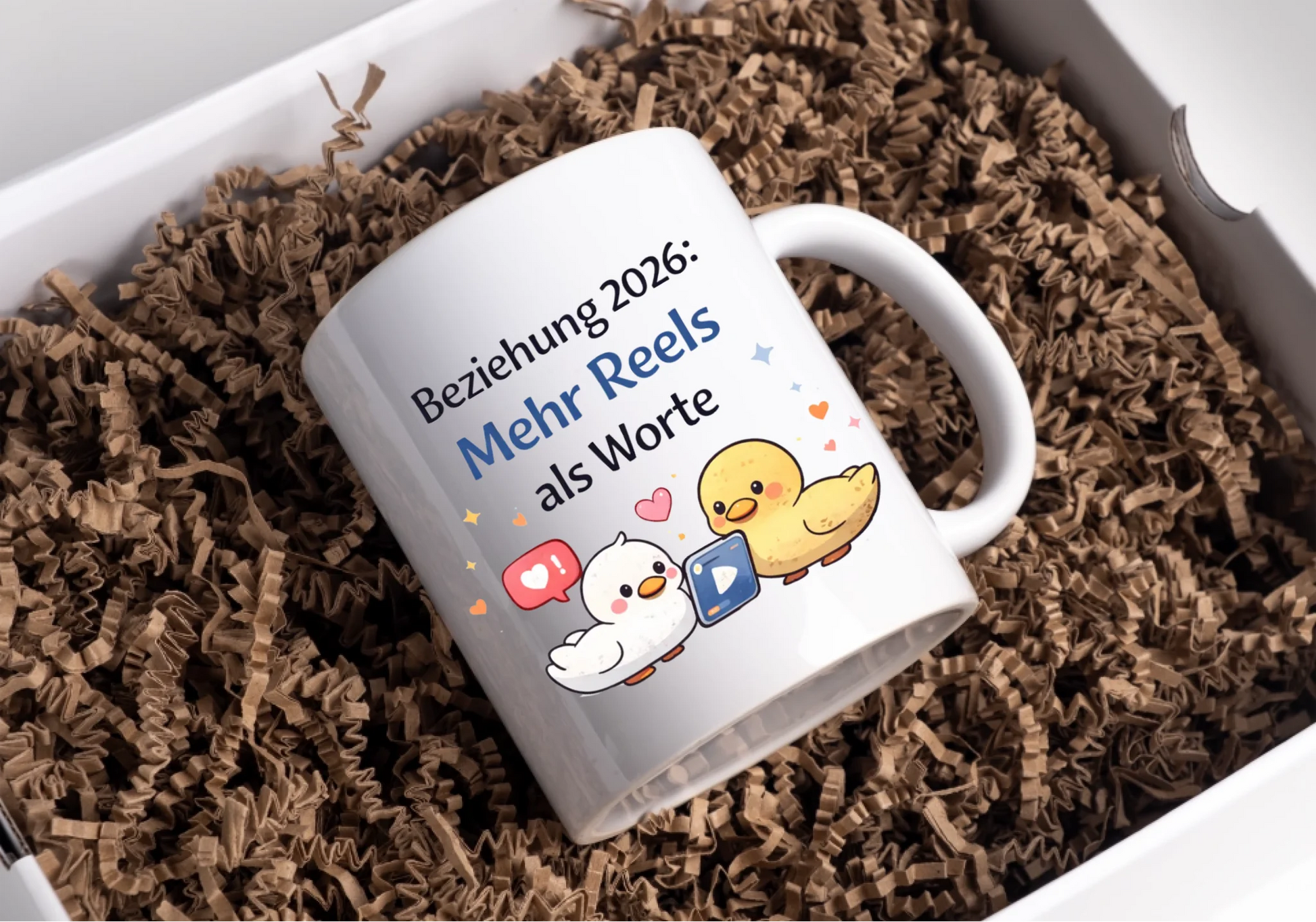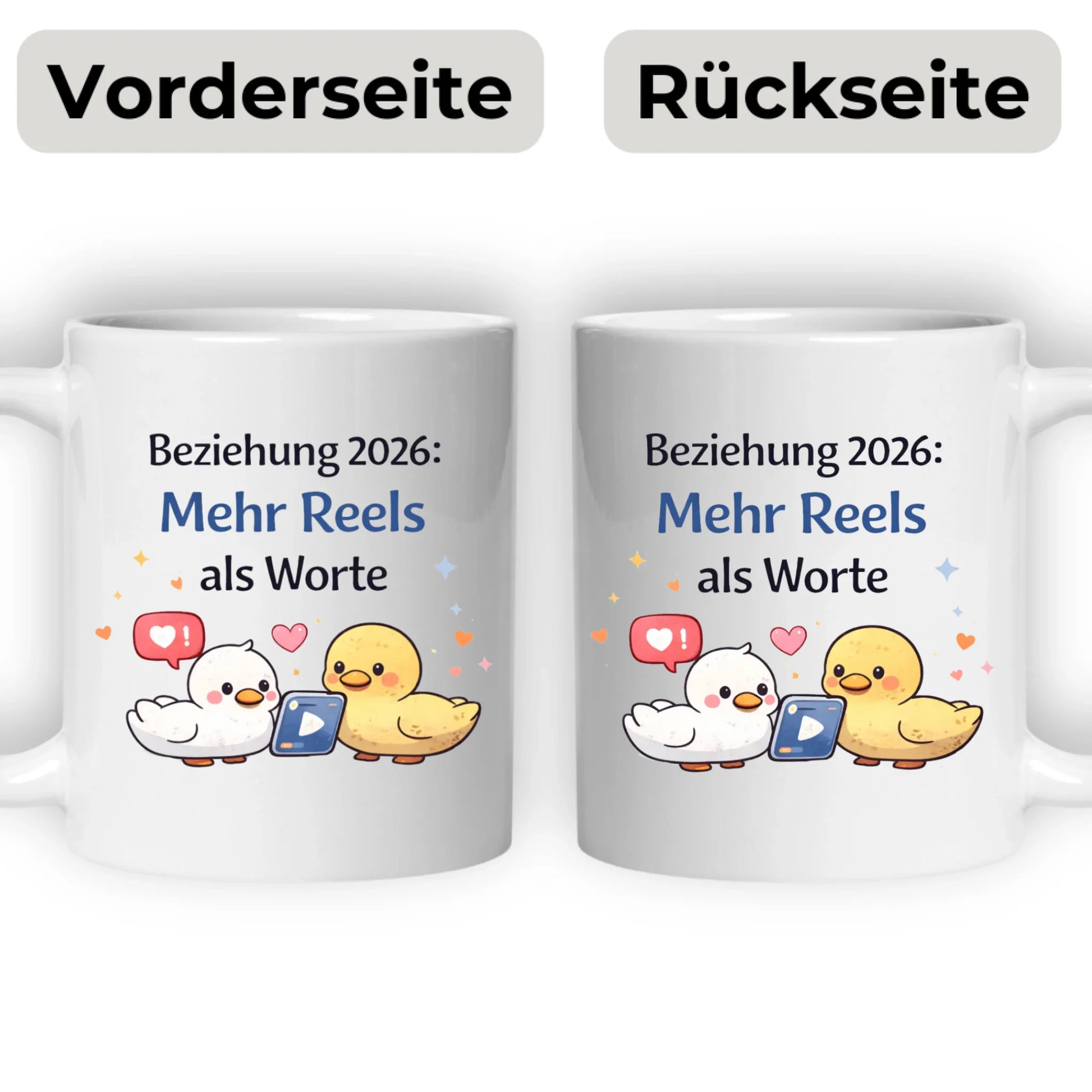 Kaffeetasse Tasse mit Spruch: Beziehungen 2026 Mehr Reels als Worte
