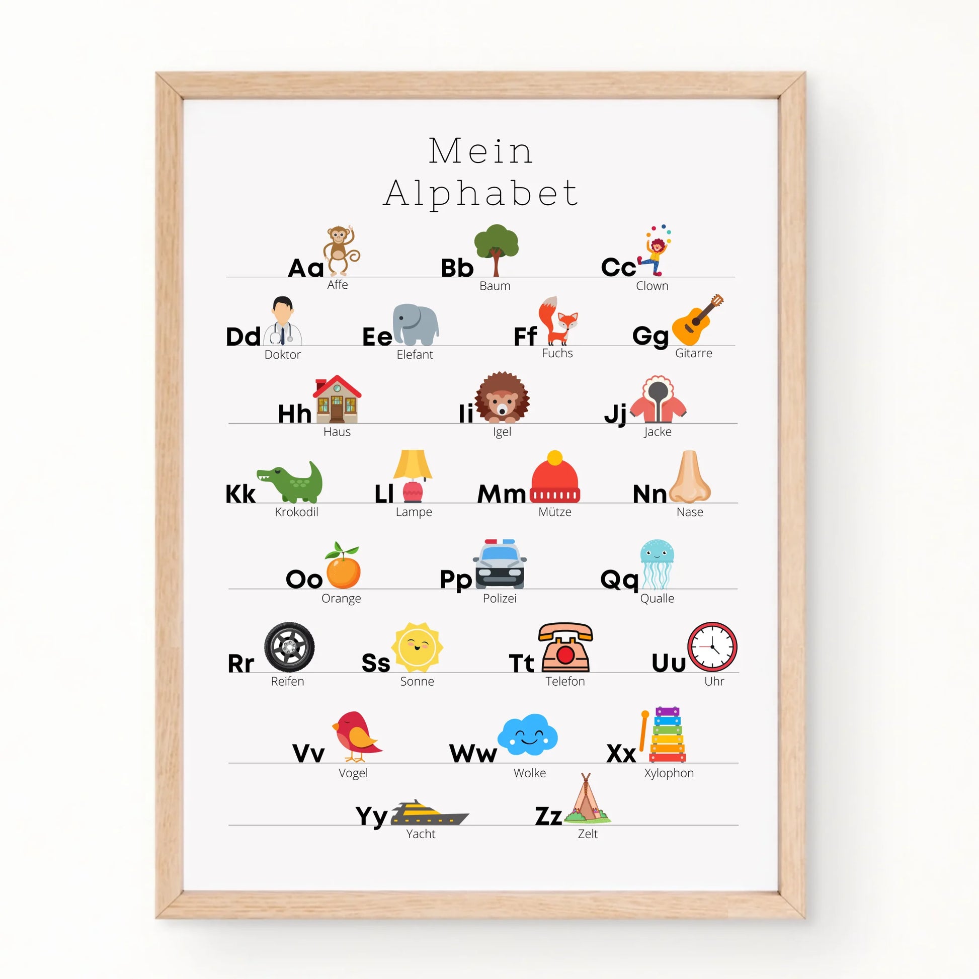 📦 Lieferumfang: 1x Alphabet-Poster (Rahmen nicht enthalten)