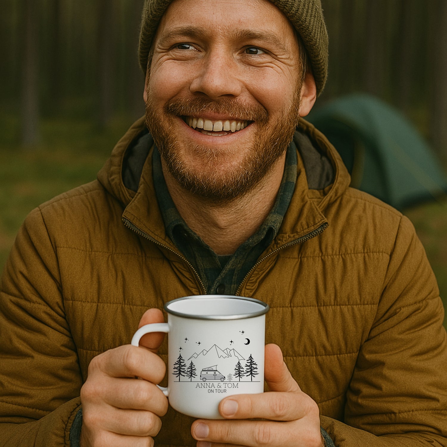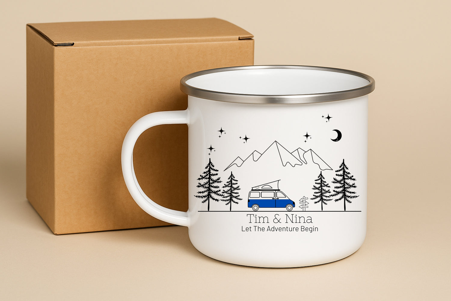 Einzigartig & persönlich: Unsere Emaille-Tassen sind liebevoll gestaltet und ideal als Geschenk für Outdoor-Fans, Vanlife-Enthusiasten und alle, die das Abenteuer lieben